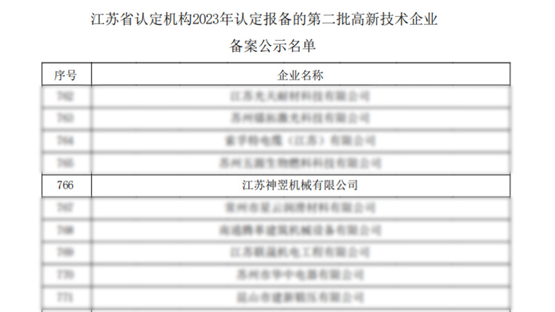神翌机械再获国家高新技术企业认定,技术实力与创新实力再获认可!